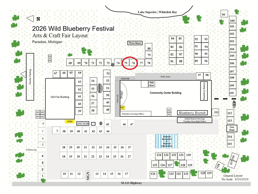 Just a Reminder to all Arts & Crafts Fair Attendees: Dogs Are Not Allowed on the Wild Blueberry Festival Fair Grounds or Whitefish Township Community Center during the Festival (Service Animals Excluded). Service Animals need to be registered in the festival office upon arrival. Please make safe and secure arrangements for your dog(s) while attending the festival.